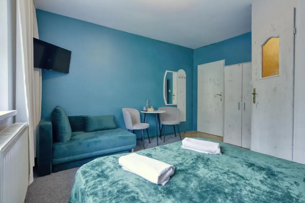 Pokoje: obiekt oferuje funkcjonalne pokoje z łazienkami – do wyboru 2-, 3- i 4-osobowe wyposażone w toaletę, ręczniki, mydło i żel pod prysznic, wi fi, telewizor.