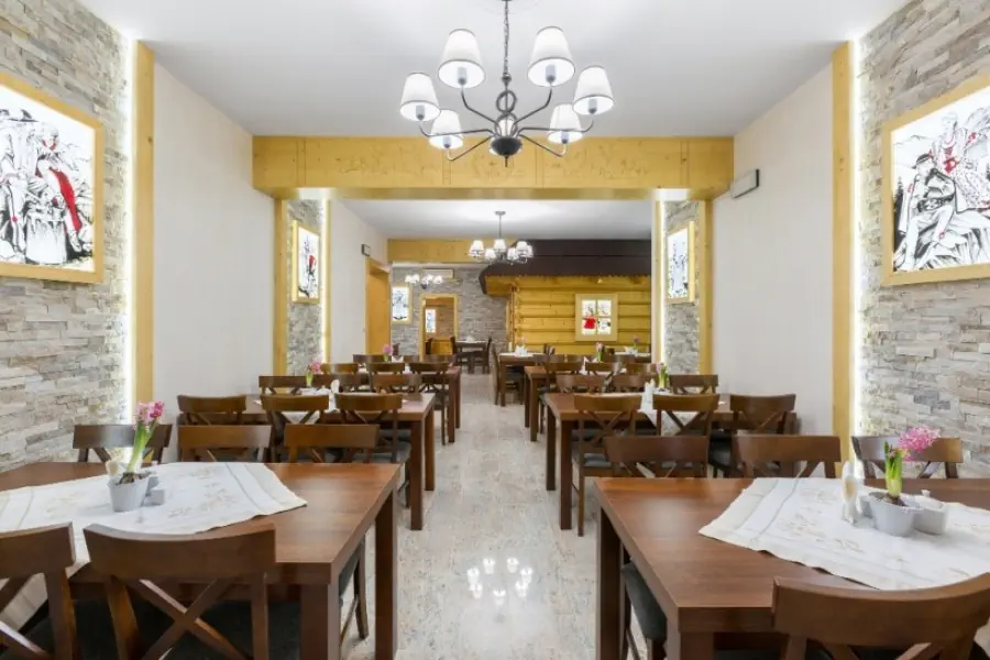 - obiadokolacje (zupa, danie główne, deser, kompot) serwowane do stolika w godzinach 16:00-18:00