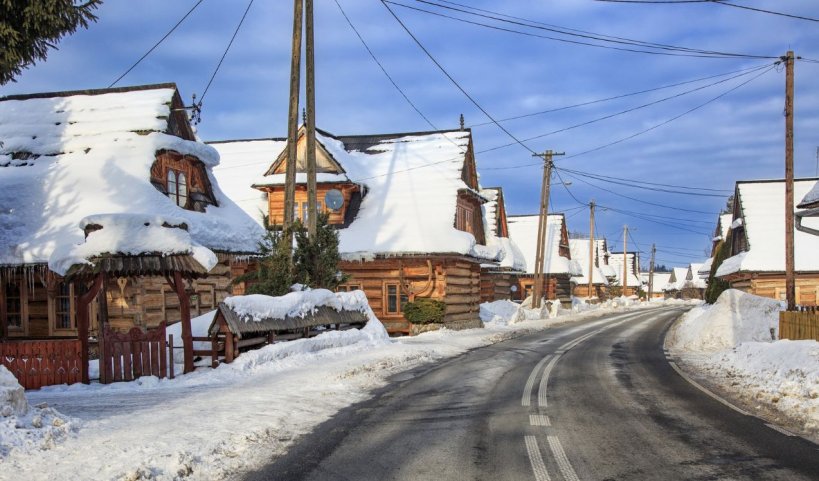 Przejazd przez Chochołów, jednej z najpiękniejszych wsi Podhala, słynącej z zabytkowej drewnianej zabudowy i wielowiekowej tradycji góralskiej.